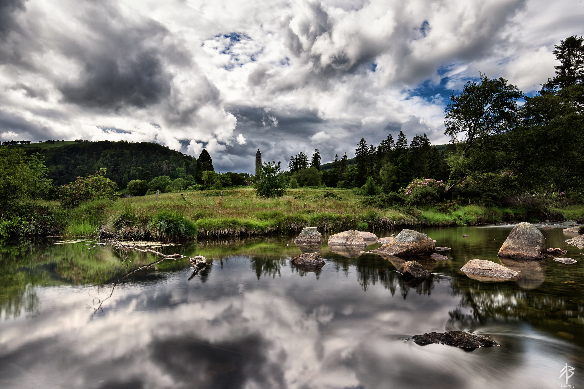 Starting from the Lower Car park, you walk through the amazing stone ruins of the monastic settlement originally built in the 6th century by St. Kevin. Admire the 33 meters high Glendalough round tower build by the monks of St Kevin monastery almost 1000 years ago. Make your way through the graveyard and pass by St Kevin Church, cross the little bridge and turn right on the nice forest trail.